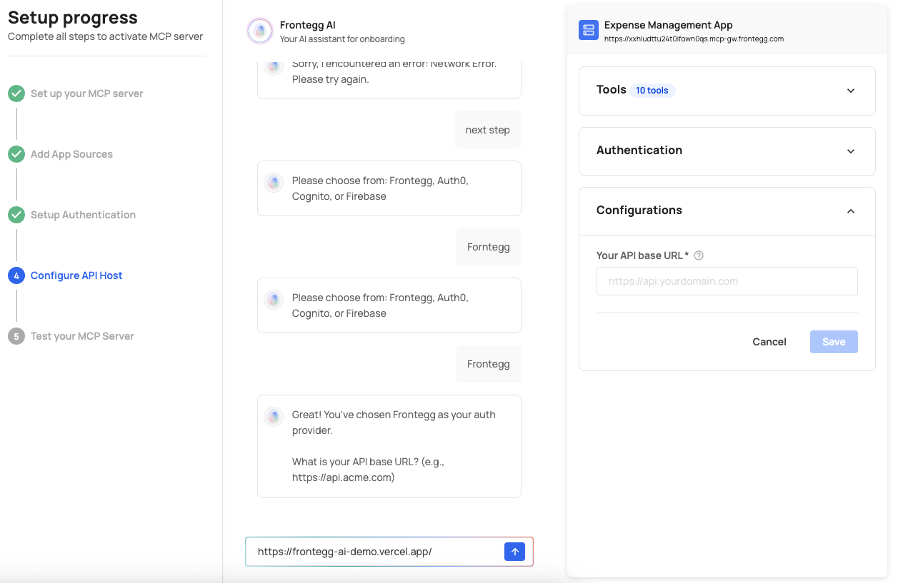 your-id.mcp-gw.frontegg.com). - An authorization server federation URL (e.g.,