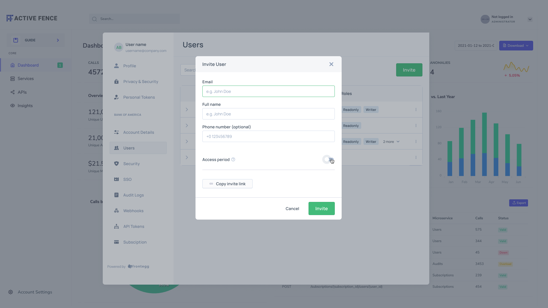 | User Management | Creating and editing invite links | fe.secure.write.tenantInvites | Users | |
