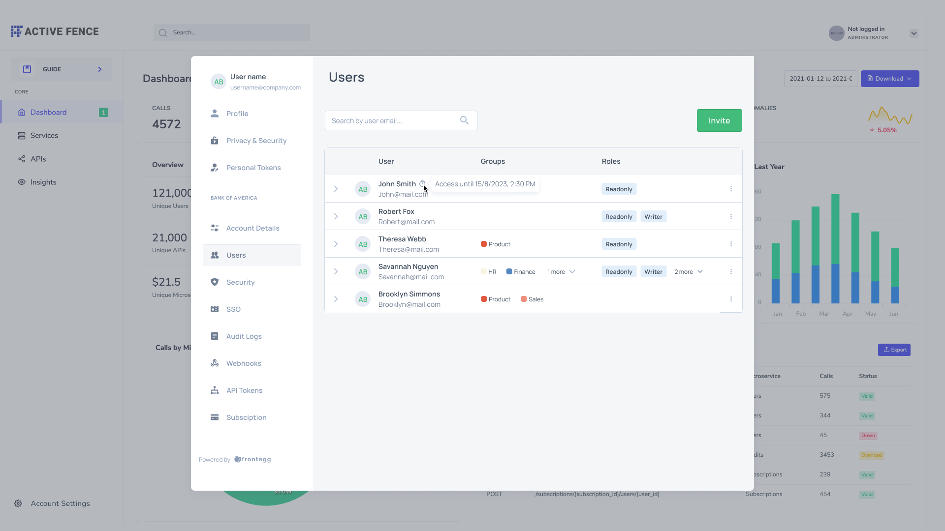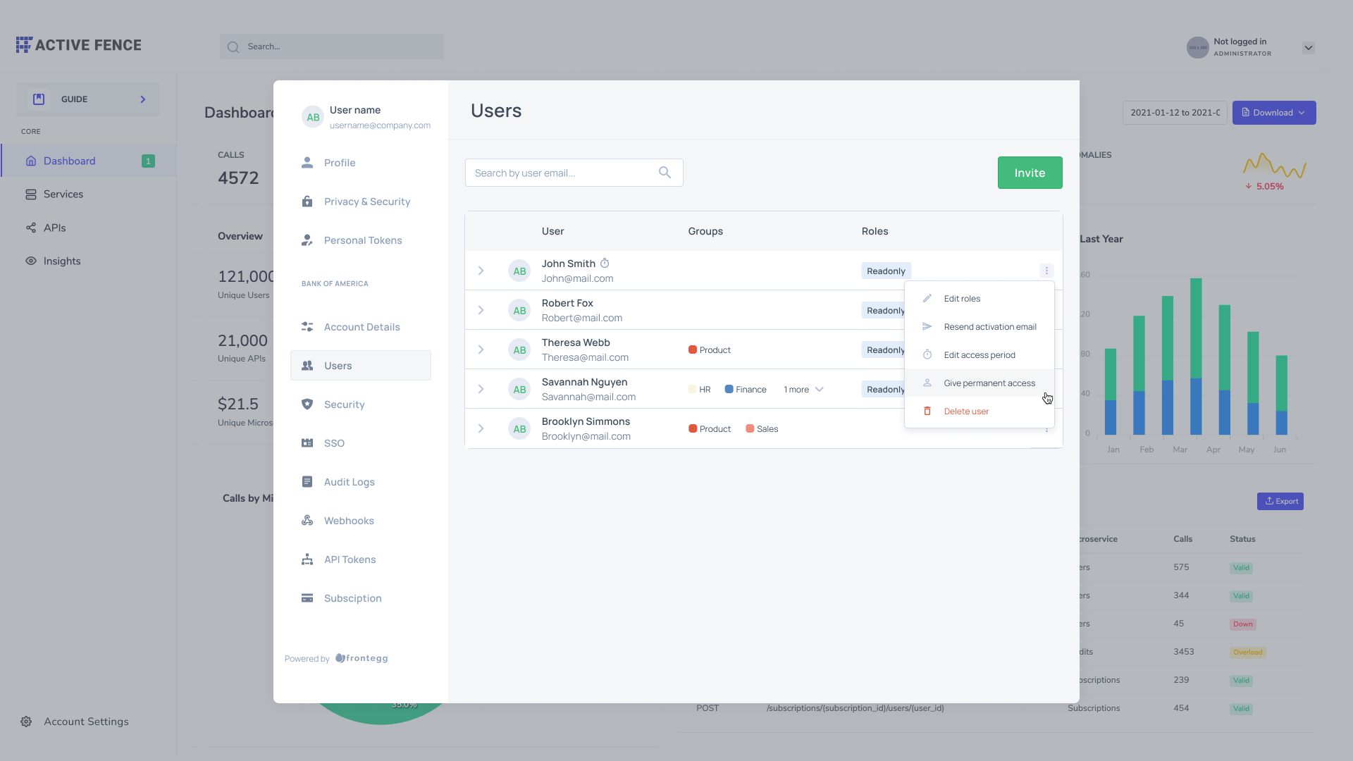 - Manage users, invite more to their account, create invite links, and assign roles