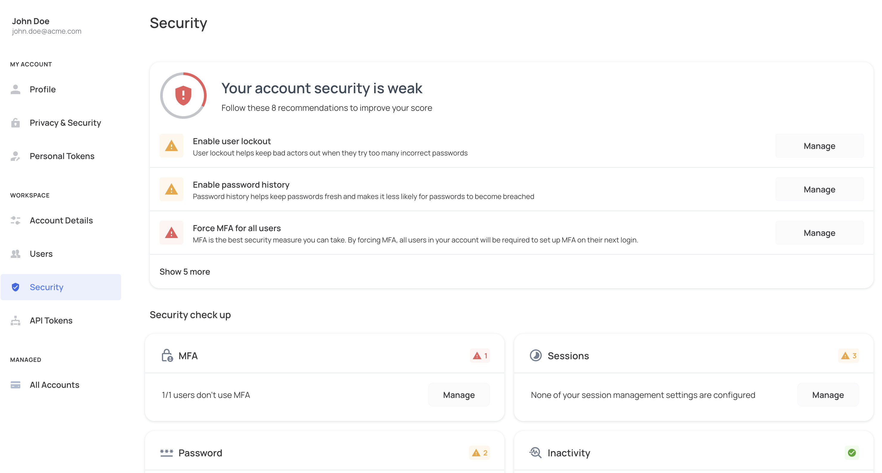 Security is critical for any app, and Frontegg gives you full control. In the self-service portal, customers can self-serve security features like MFA, session management, and login/signup restrictions. This guide covers all available self-serve security features.