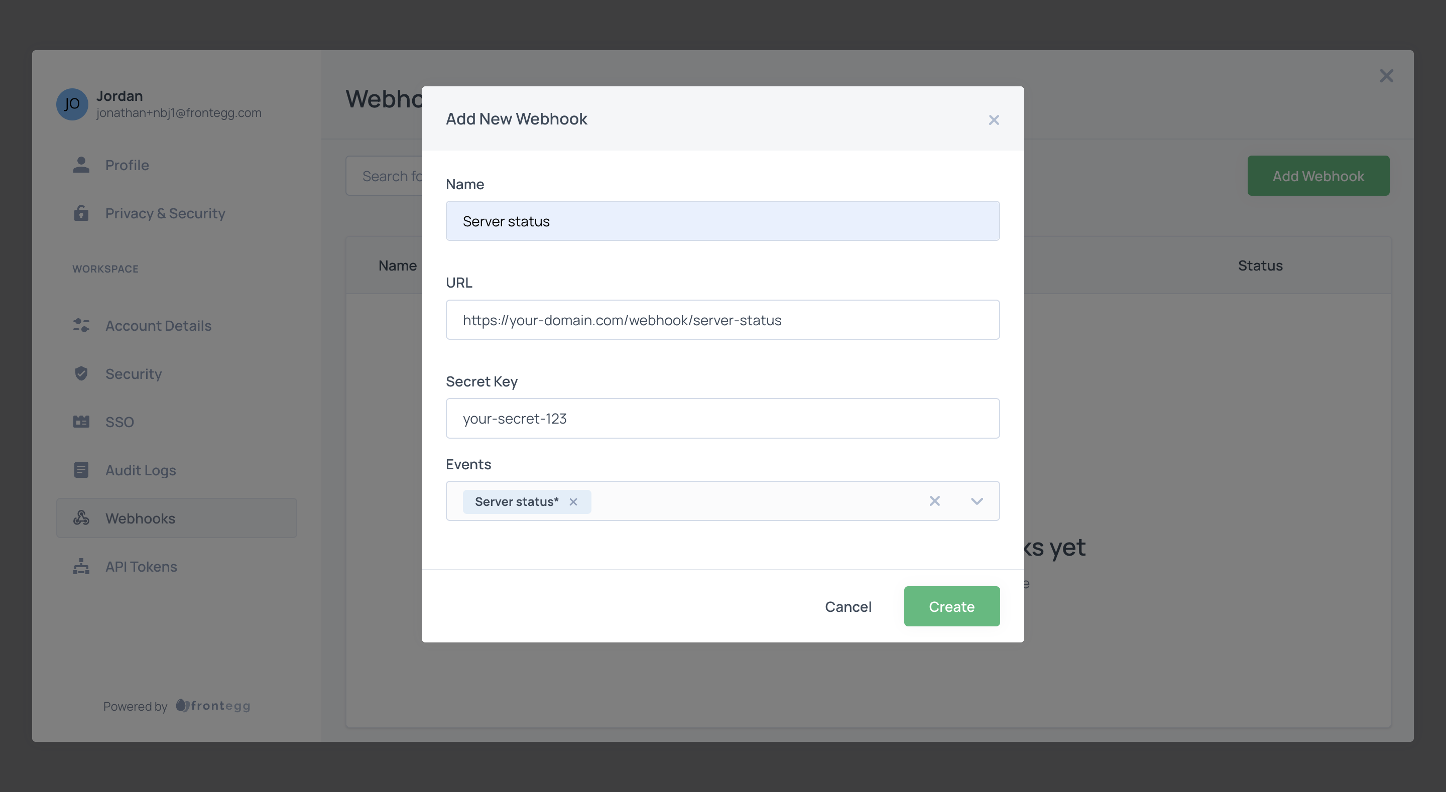 - URL - The endpoint where Frontegg sends webhook notifications. Subscribers should set it to consume the notification.