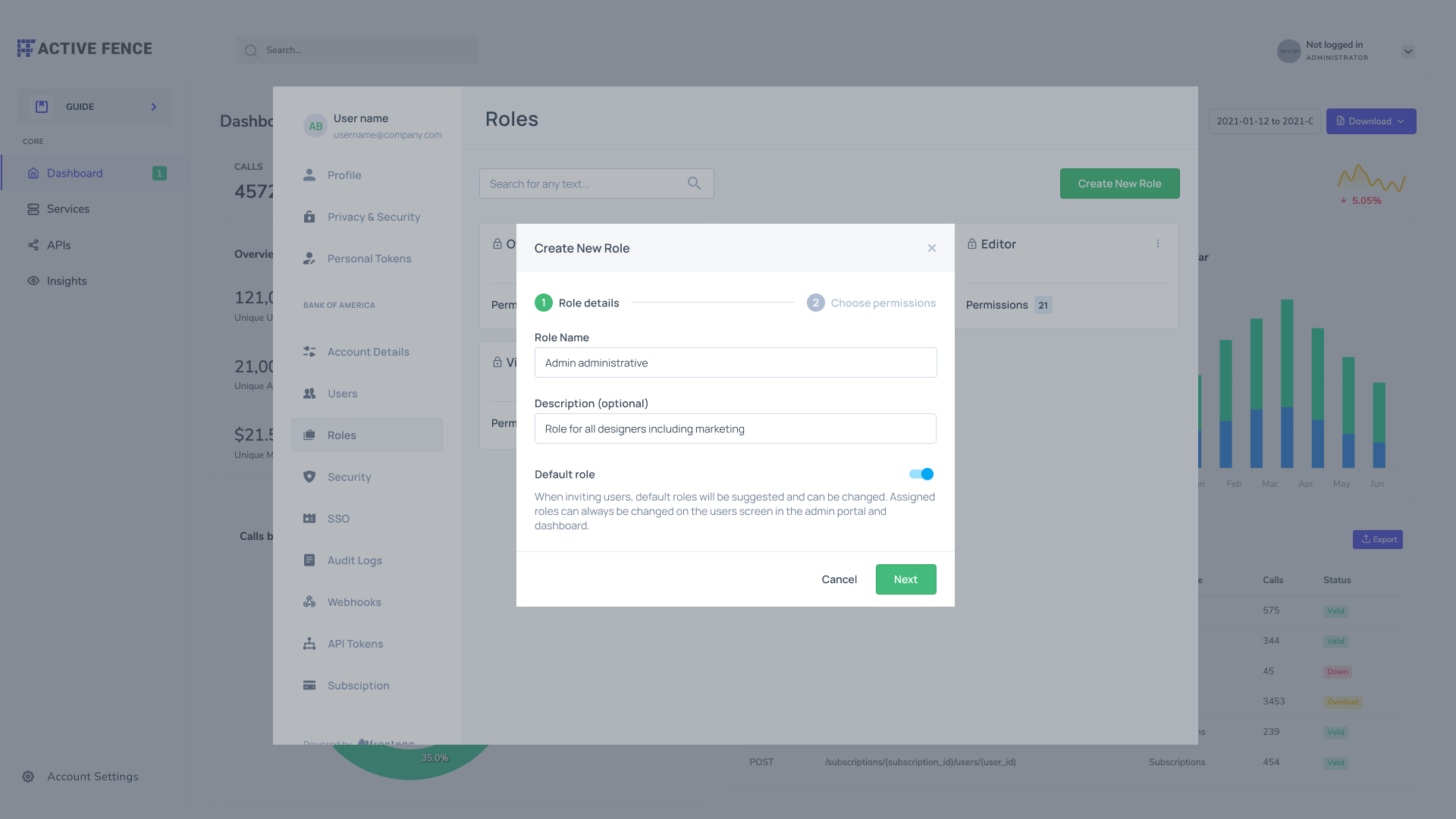If the roles page is enabled, end users will be able to create new custom roles via their self-service portal, where they will fill in the role's name and description and then assign the permissions that should be associated with that role.