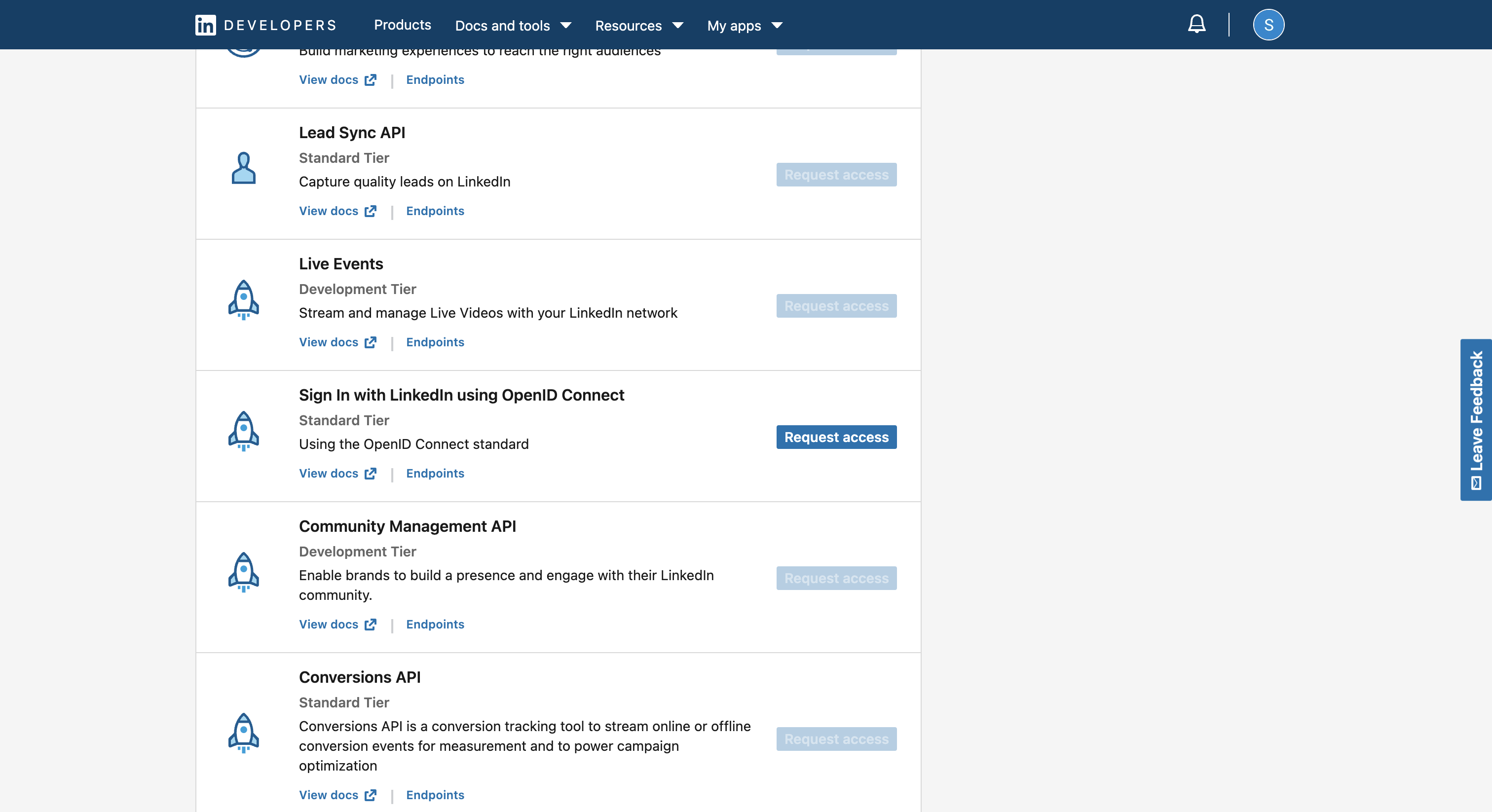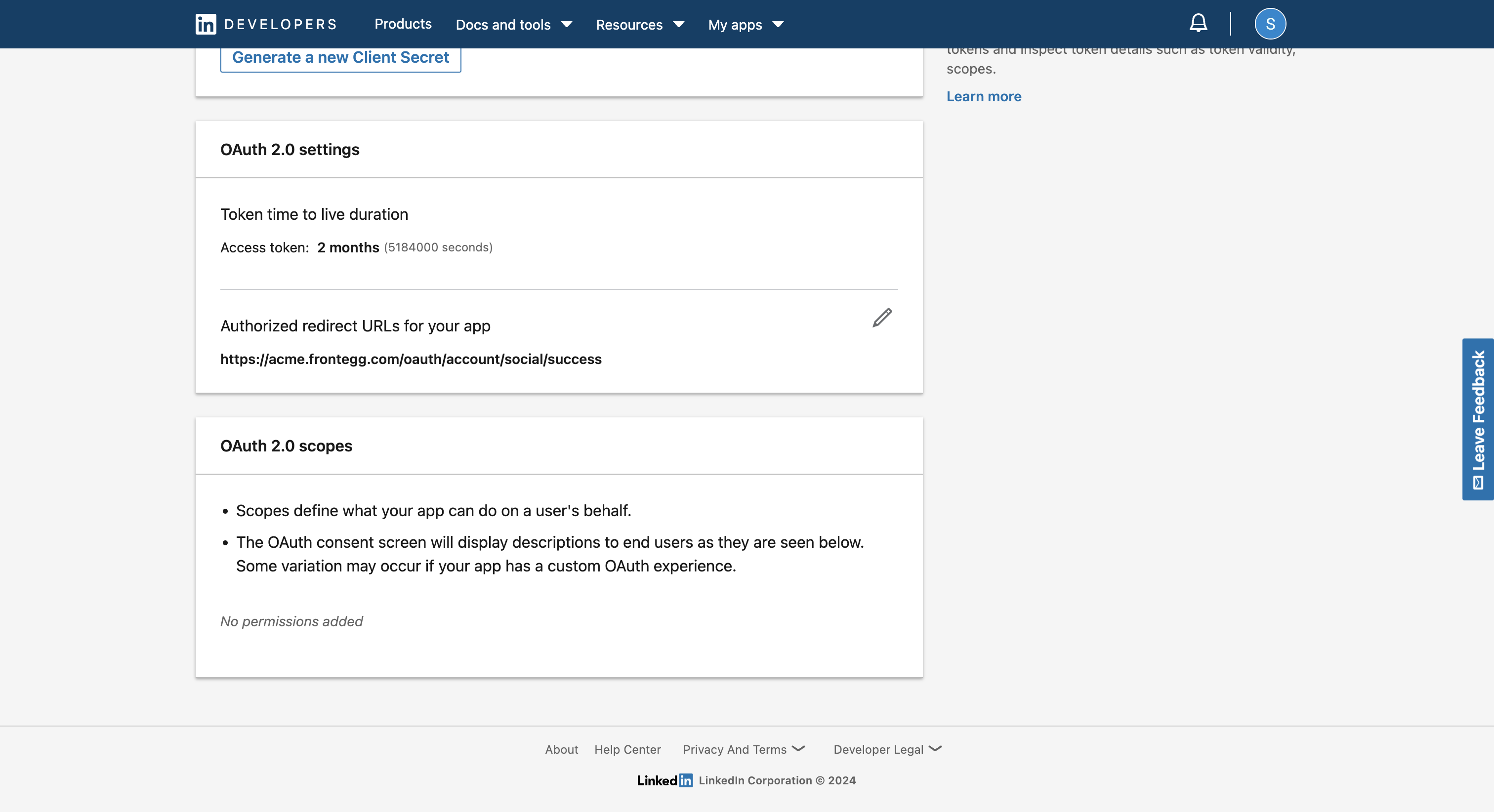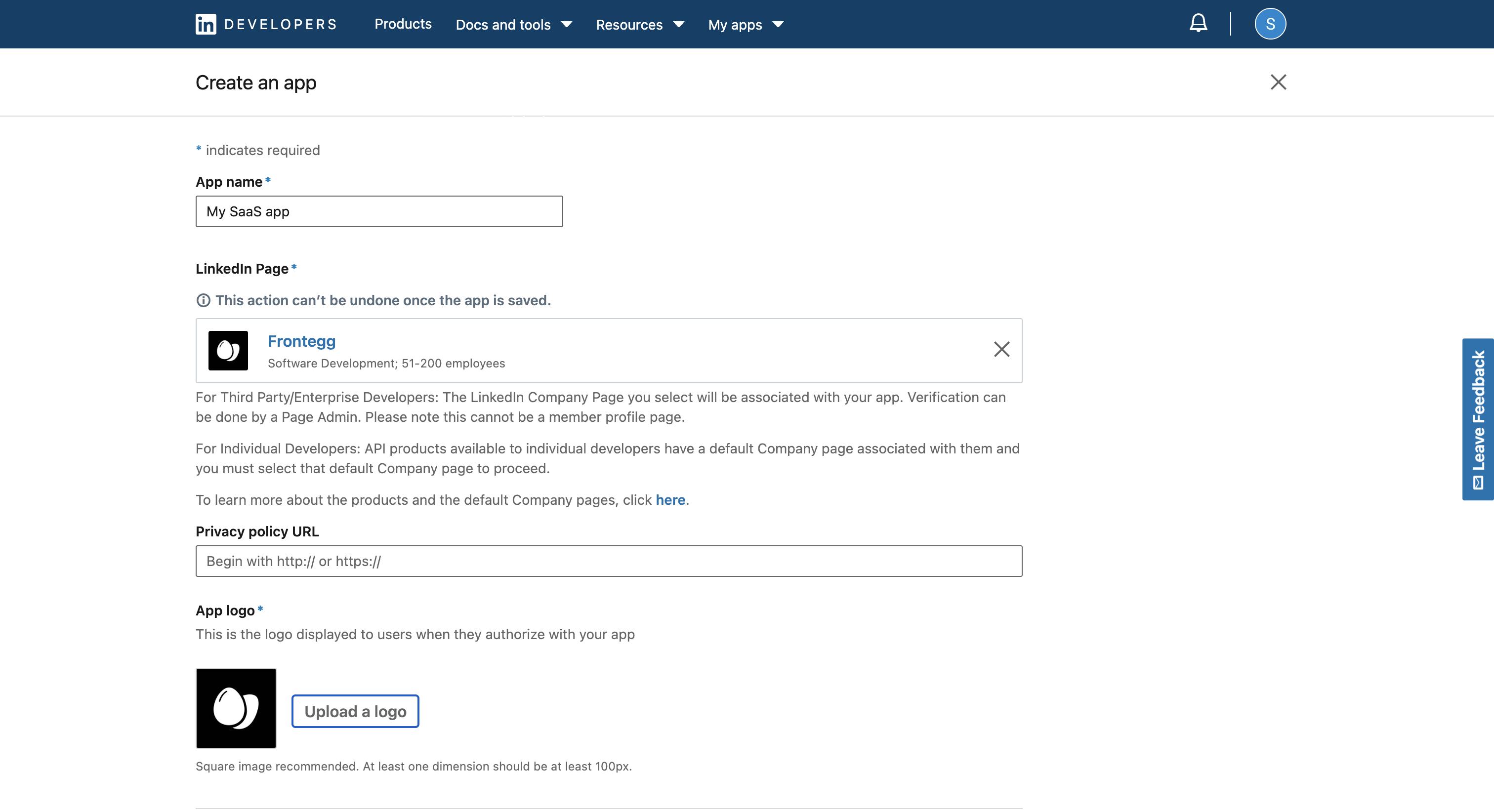 To configure LinkedIn login, you’ll need to create an app in your LinkedIn developer account.