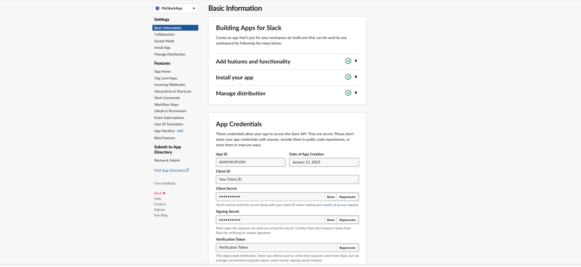 - Go to Settings ➜ Basic Information in your Slack app.
