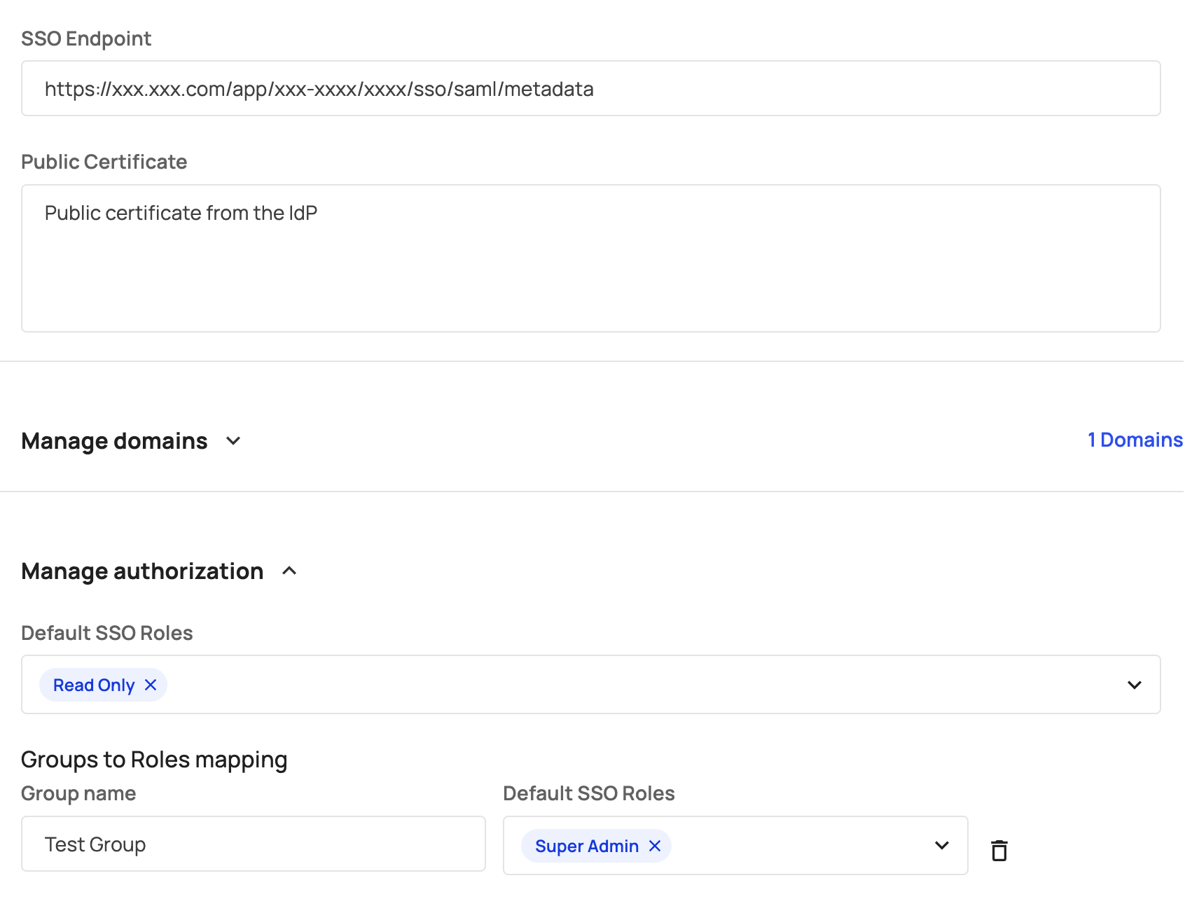 Often, end users logging in via SSO to your application need their application roles mapped to the groups assigned to them on the IdP side. By default, all users logging in through a specific SSO configuration receive the default role. If they belong to a group mapped to an additional role, they will receive that role in addition to the default SSO role.