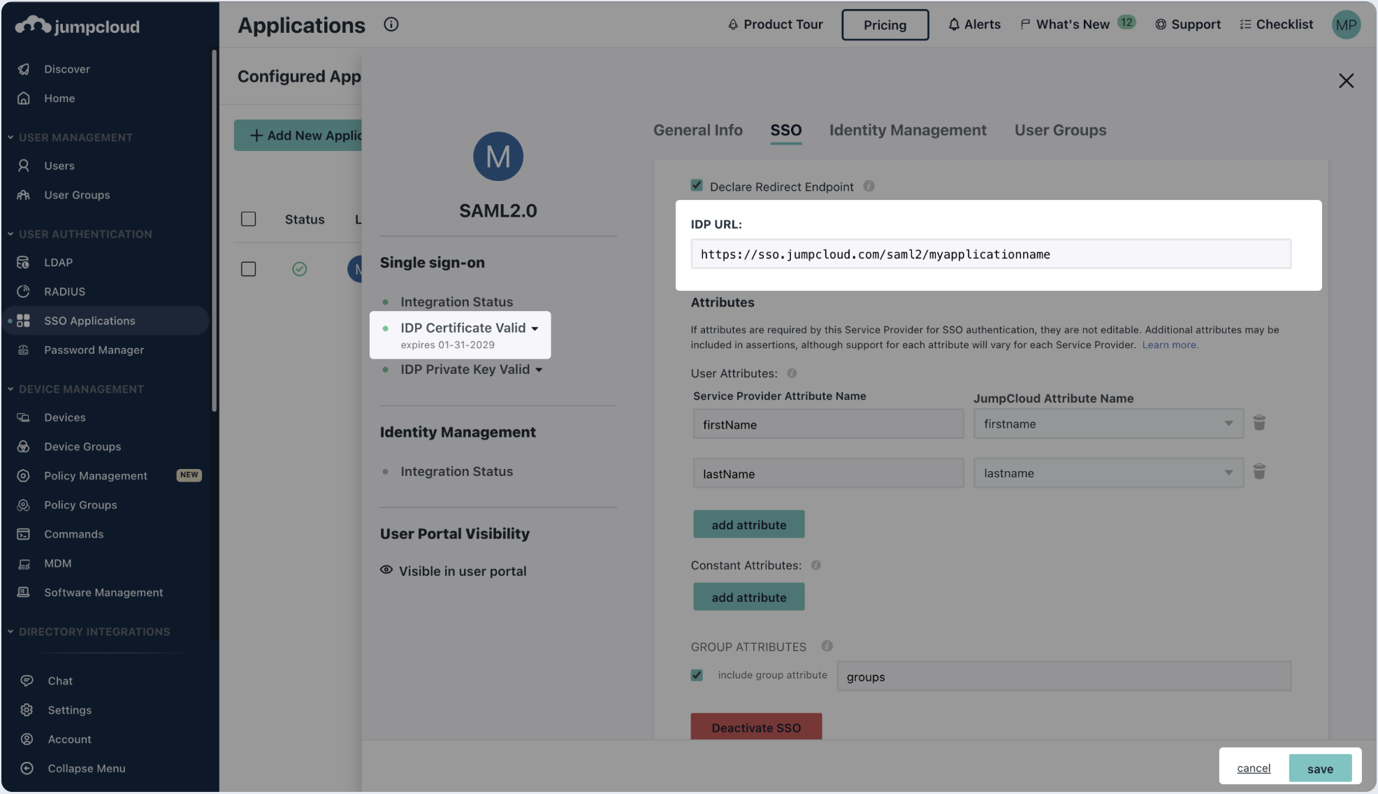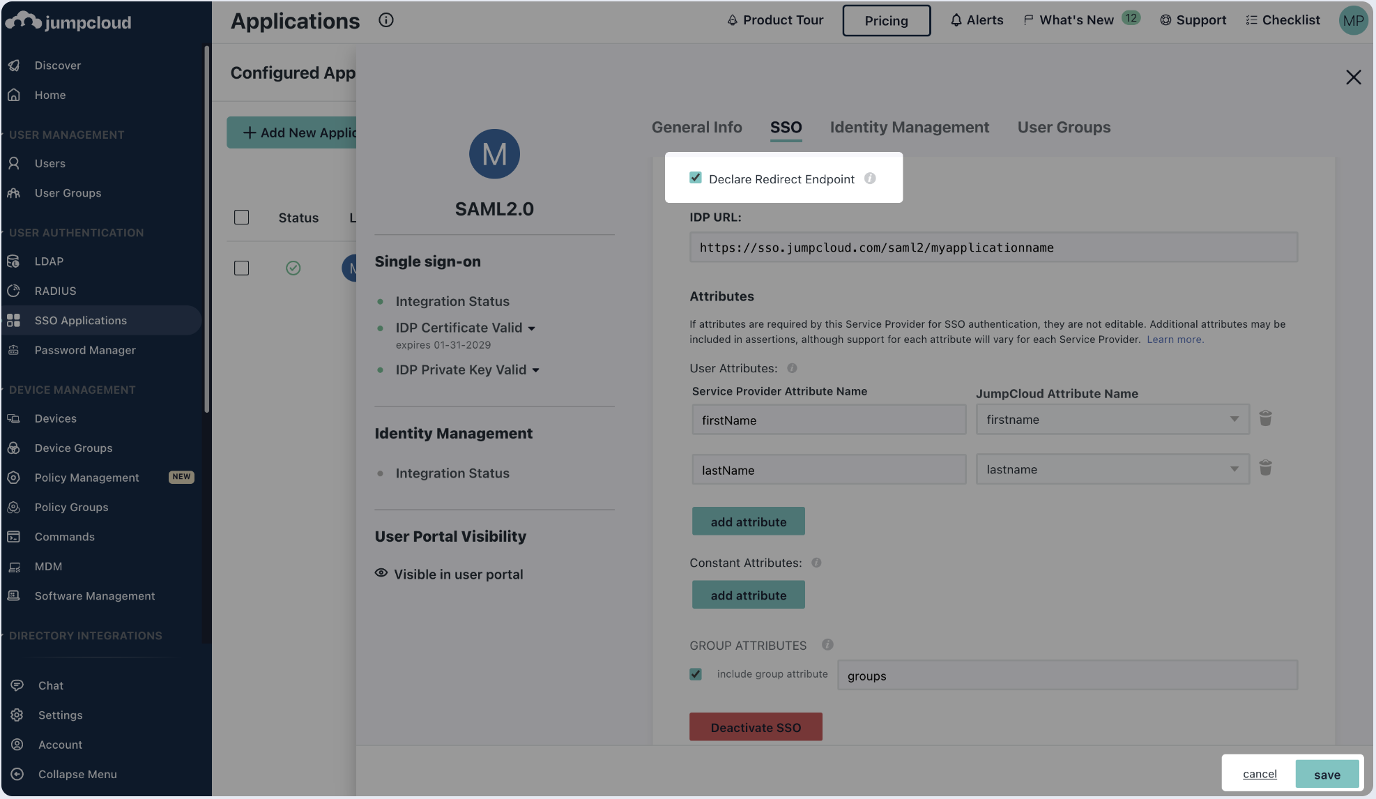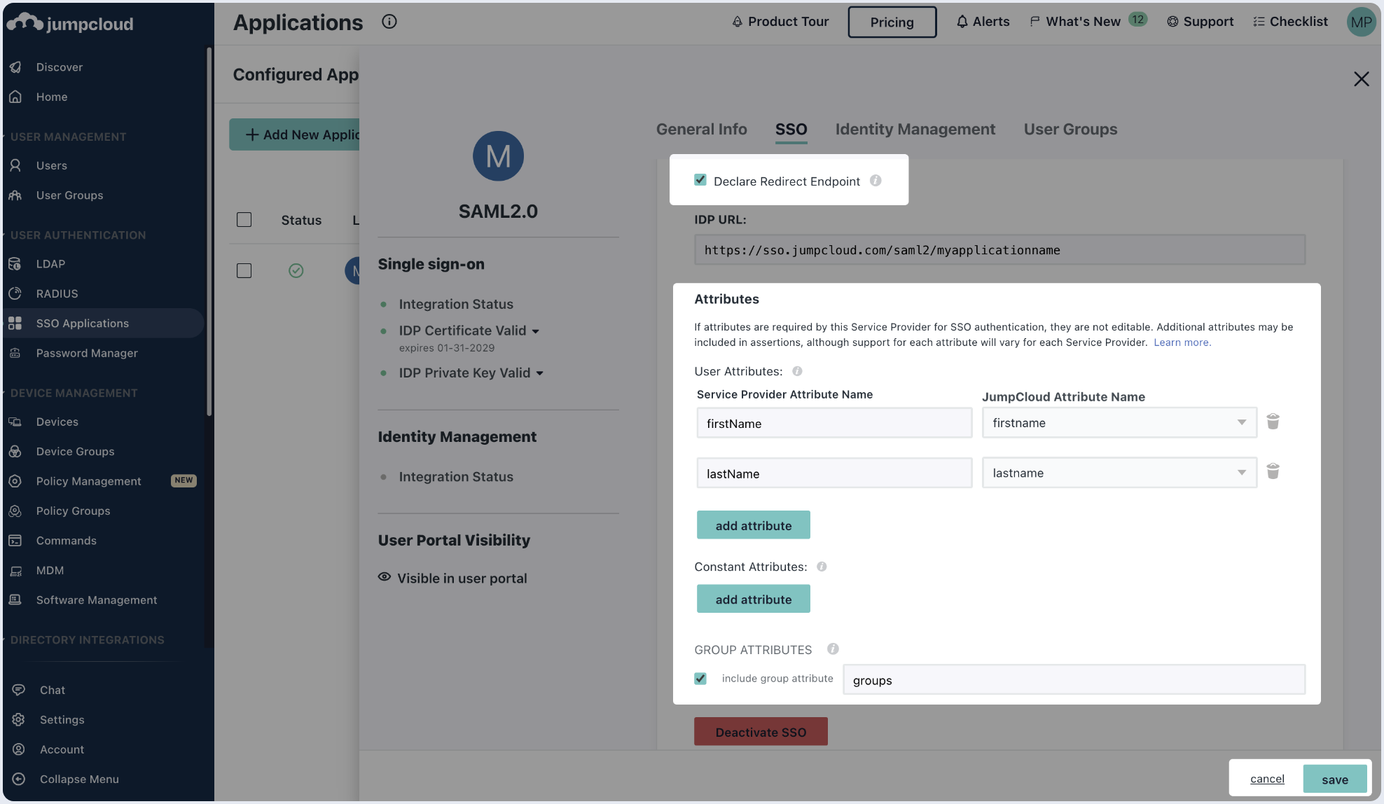 Create SAML application with Jumpcloud