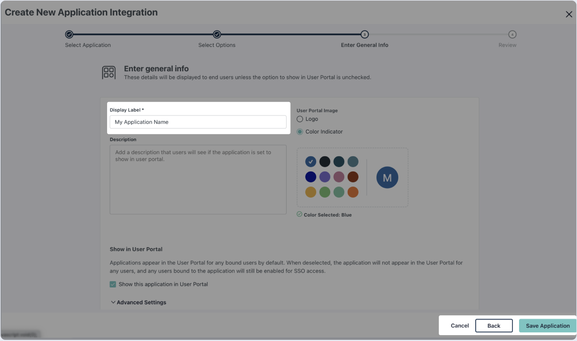 1. Enter the name of your application, then click Save Application.