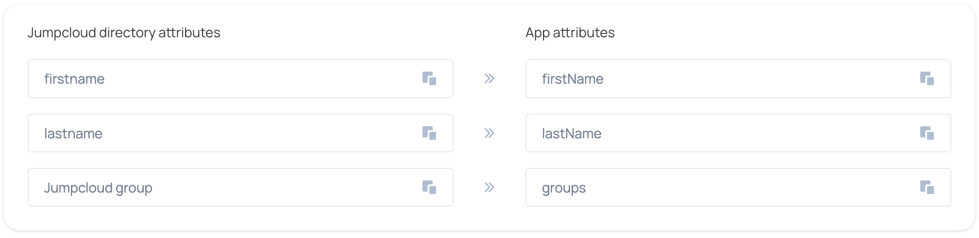 1. Under Attributes (optional) configuration in SSO Settings, fill in the following Attribute Statements and click save: