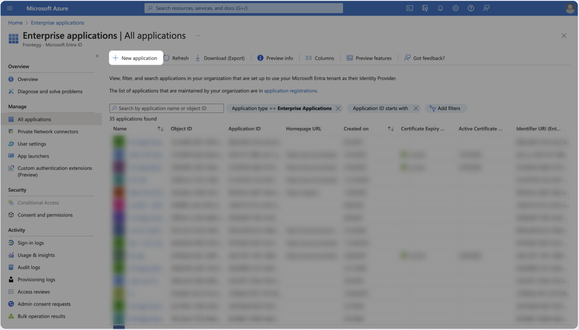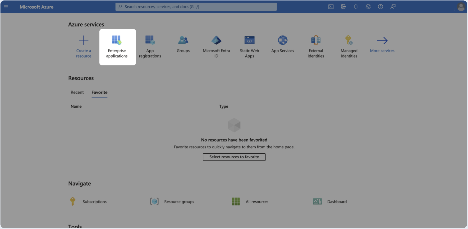 - Go to Azure Portal, open the portal menu and select Enterprise applications.