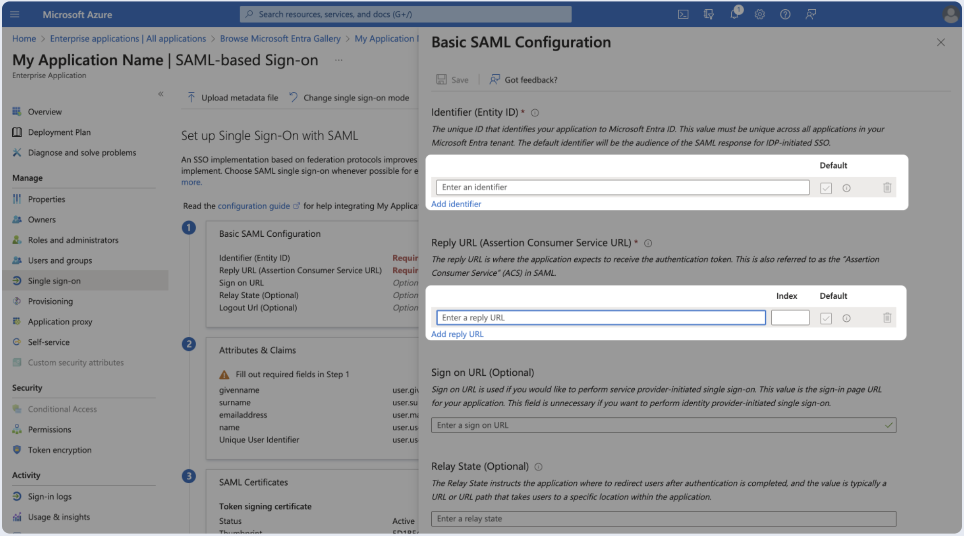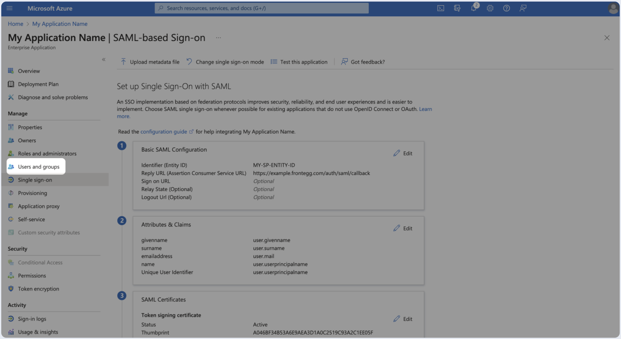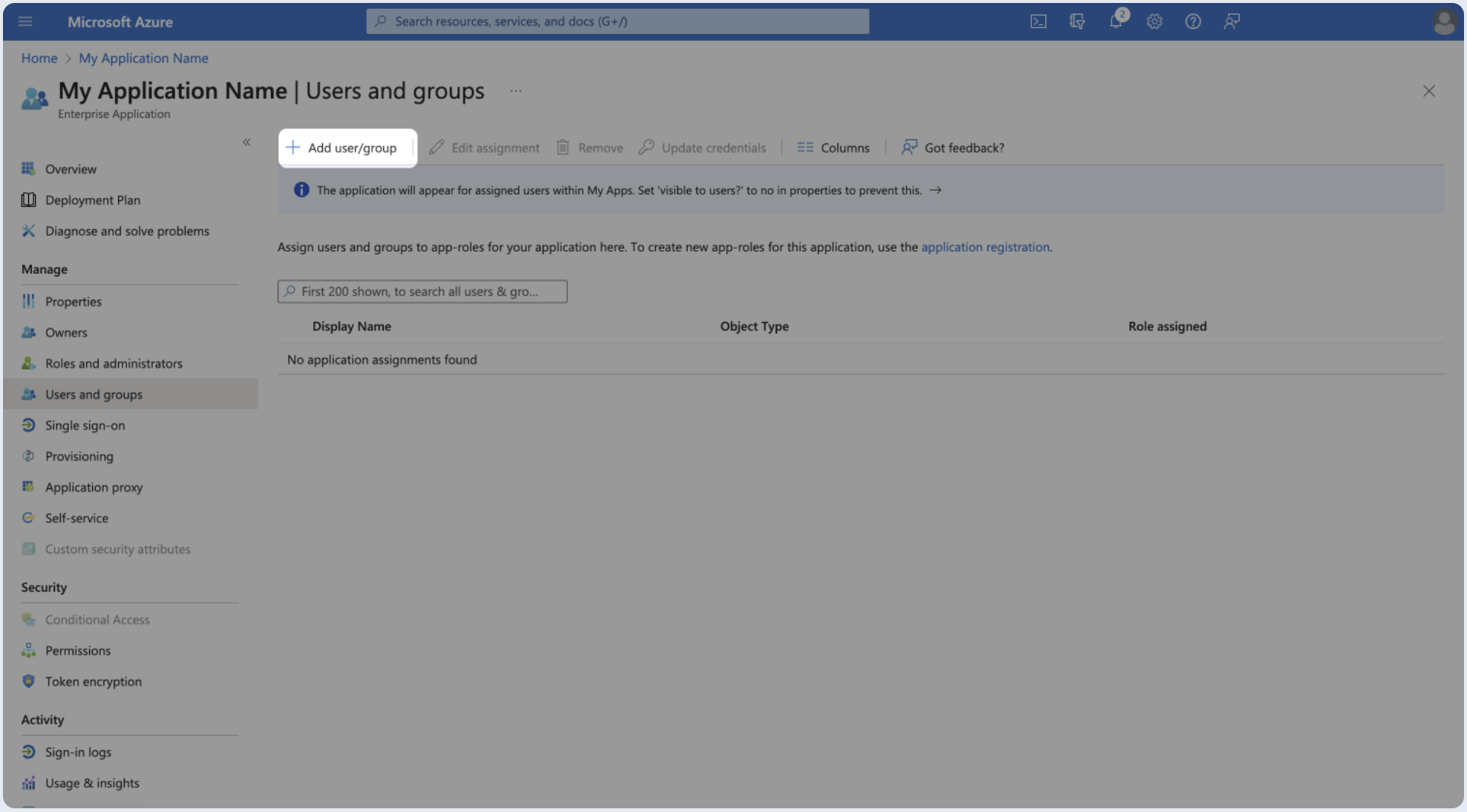 After creating the enterprise application, you should proceed to assign individual users or groups so that they can authenticate using SAML.