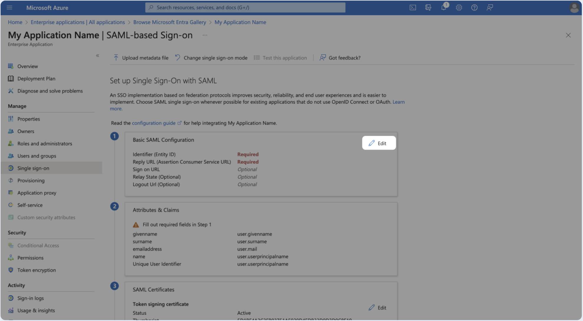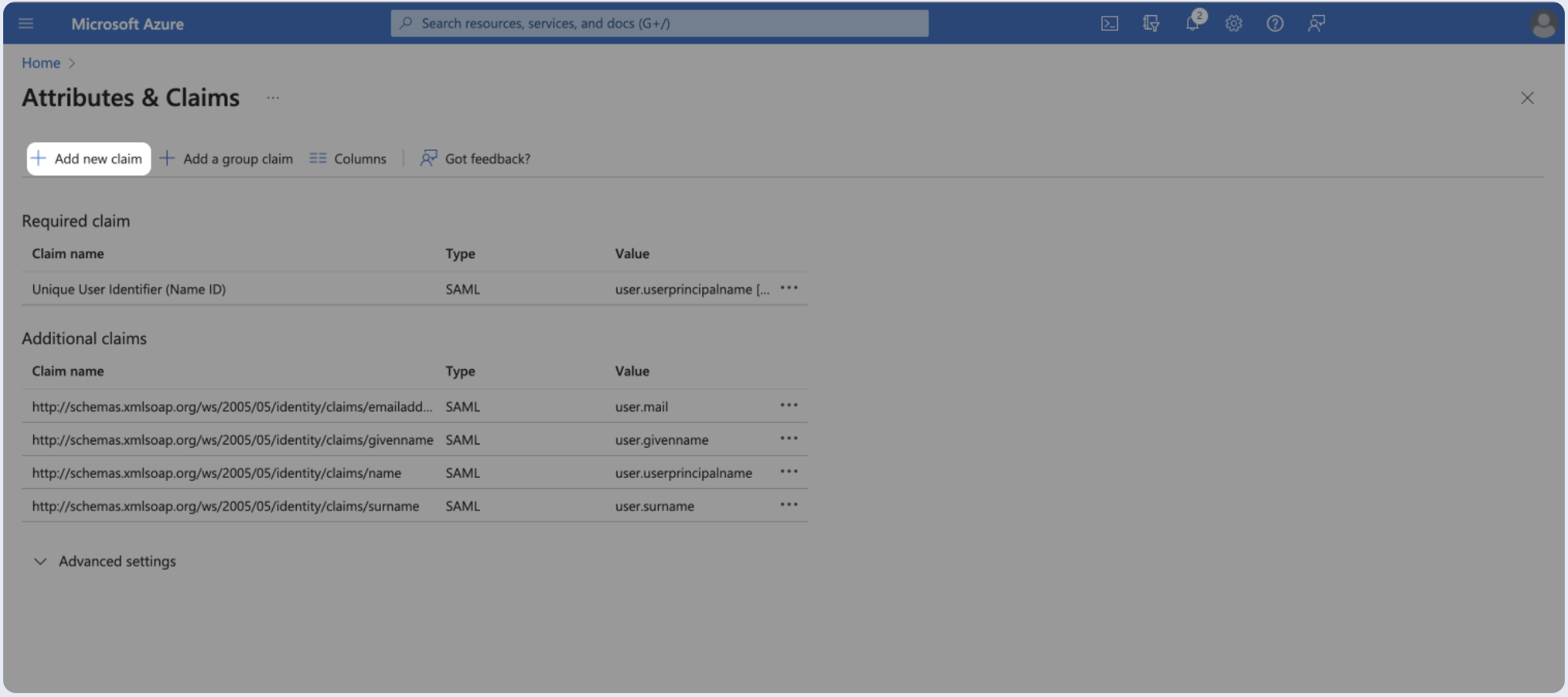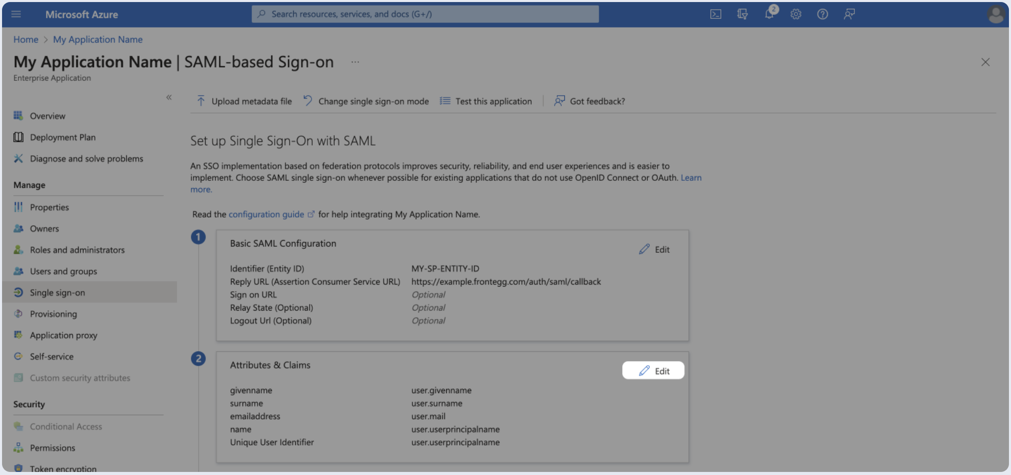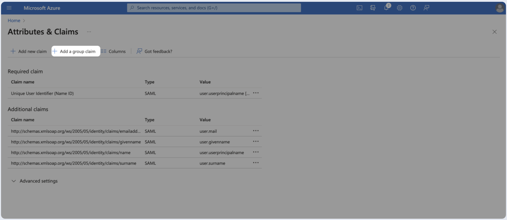 - Under Attributes & Claims (optional), click Edit.