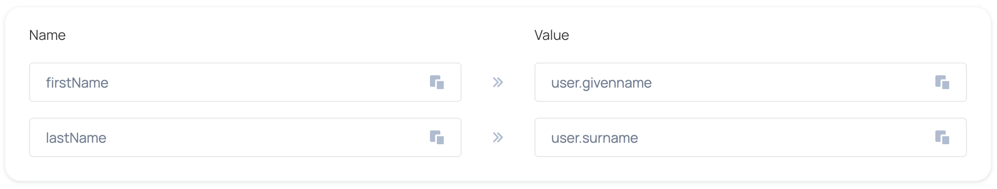 - Map the following user attributes: