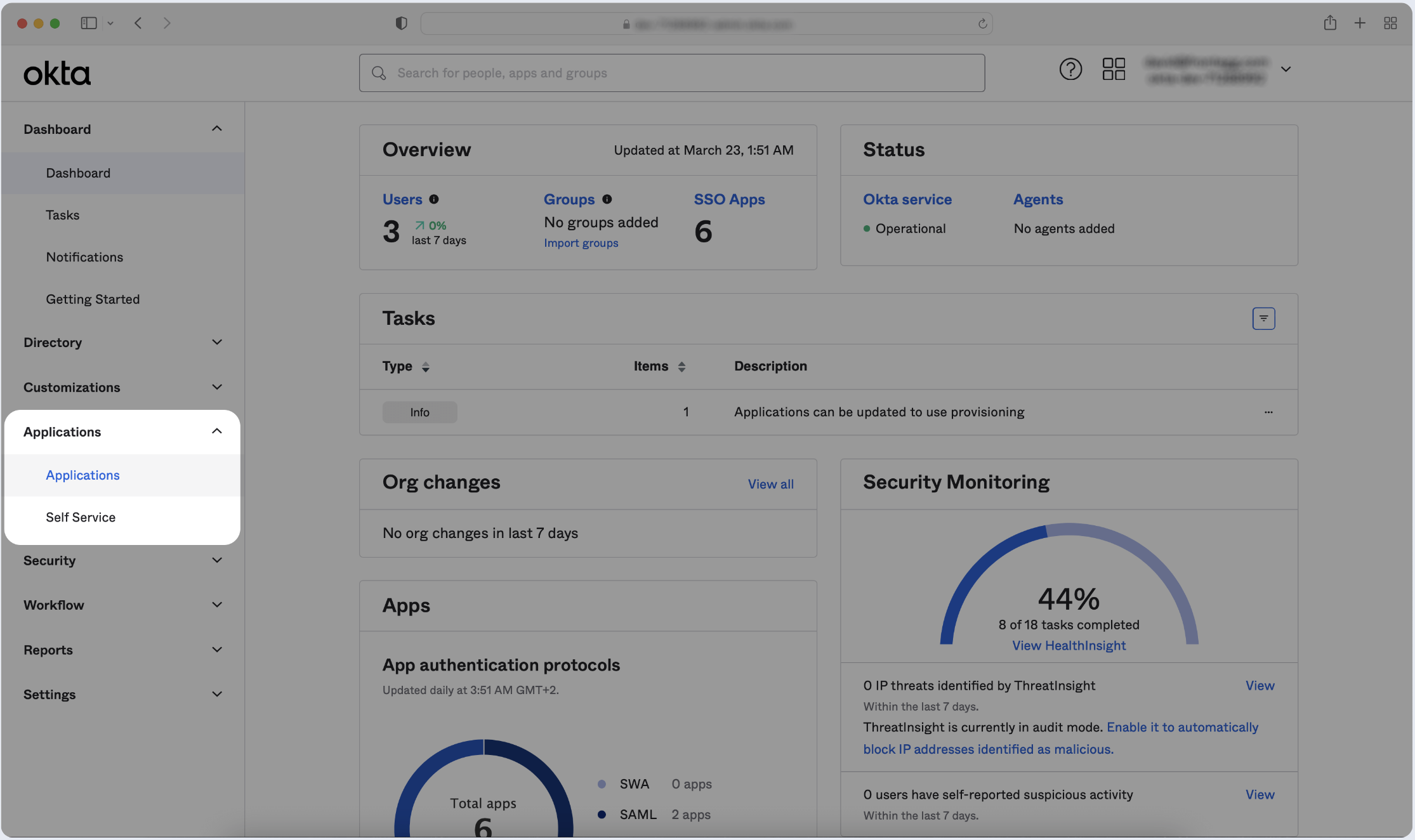1. Log in to your Okta Application Dashboard and click Applications in the sidebar.