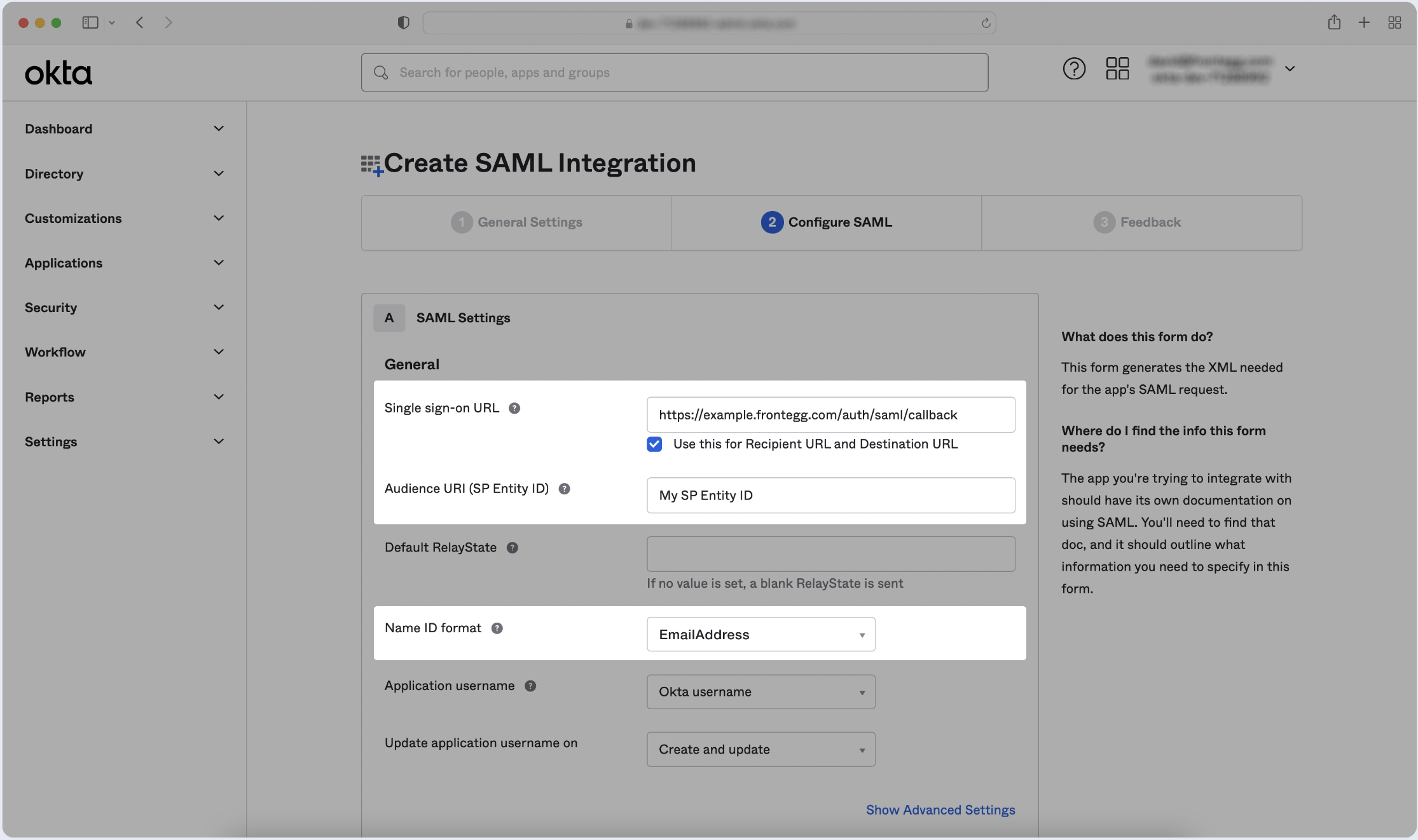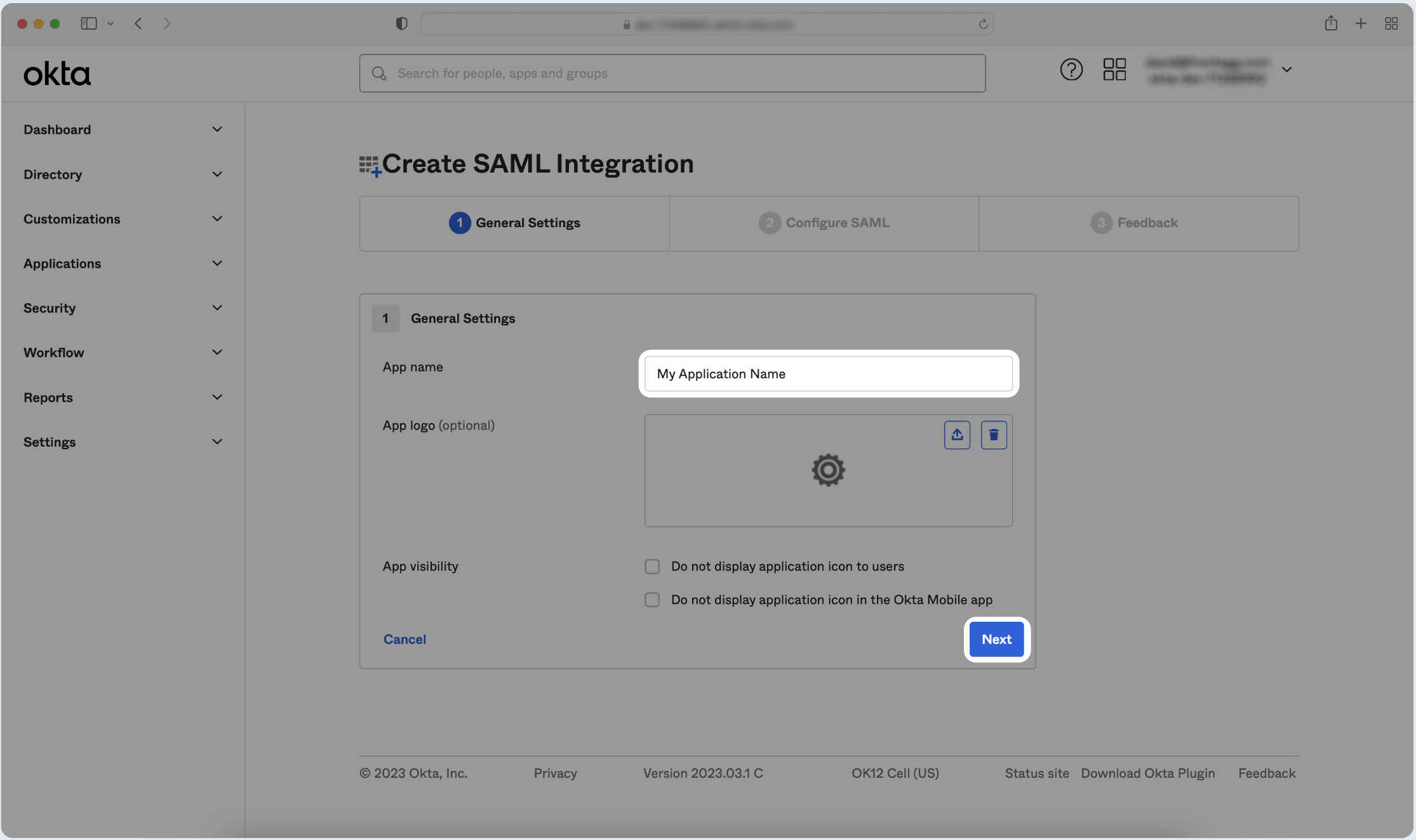 Step 1: Create SAML application