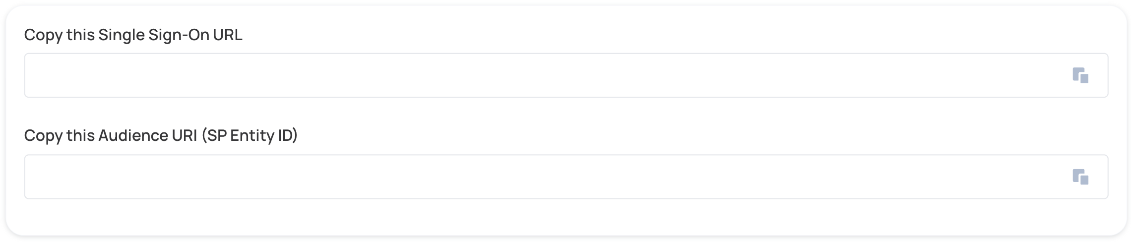 1. Copy and paste the values into the relevant fields in the SAML Settings section.