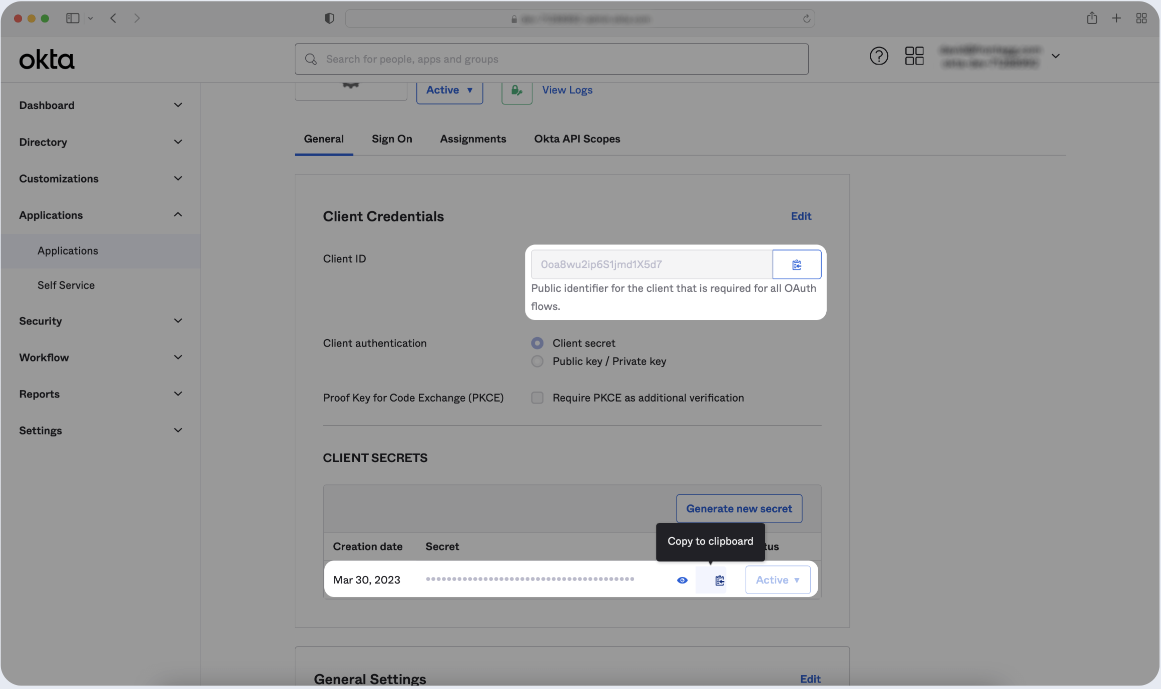 - Click on the General tab of the OIDC app you just created.