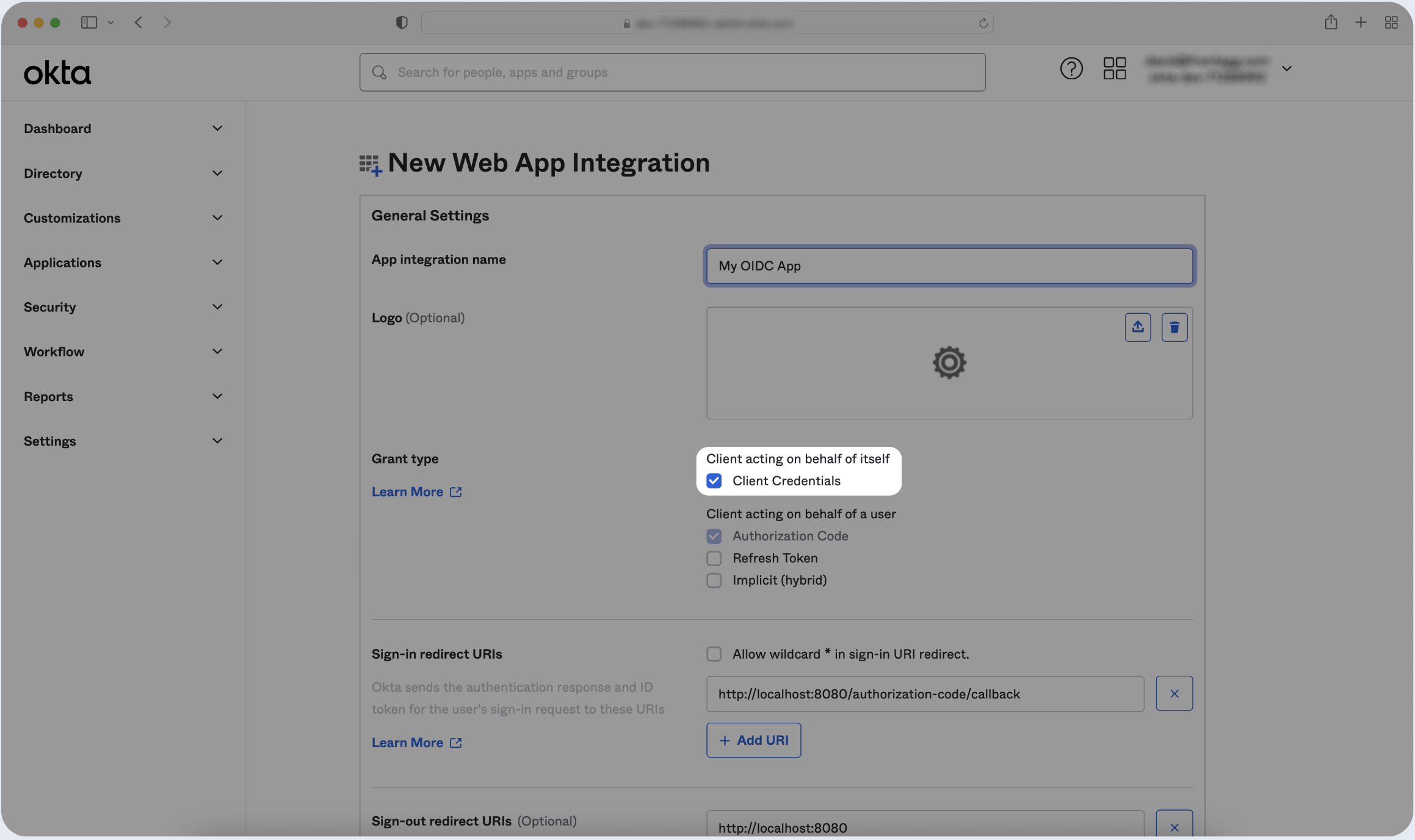 - Make sure to select Client Credentials if the client is acting on its own behalf.