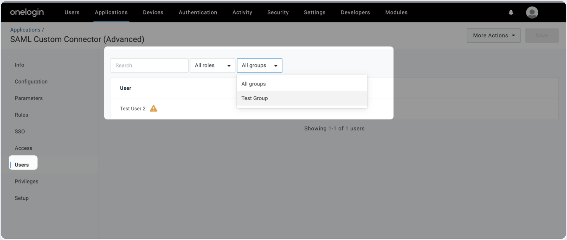 - Switch to the Users section, choose the user groups that you wish to assign to this application.