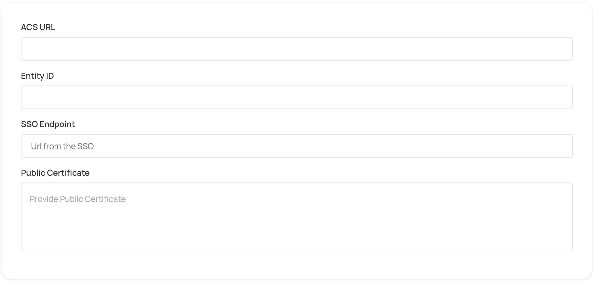 To complete the implementation of SAML SSO, you need to provide the application with your identity provider’s details.