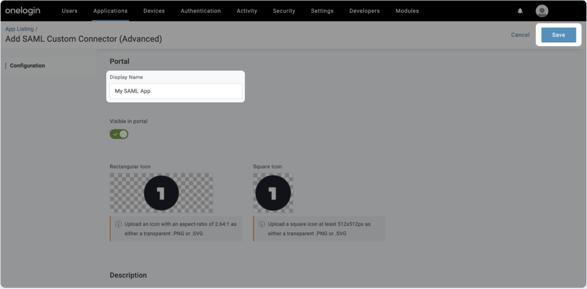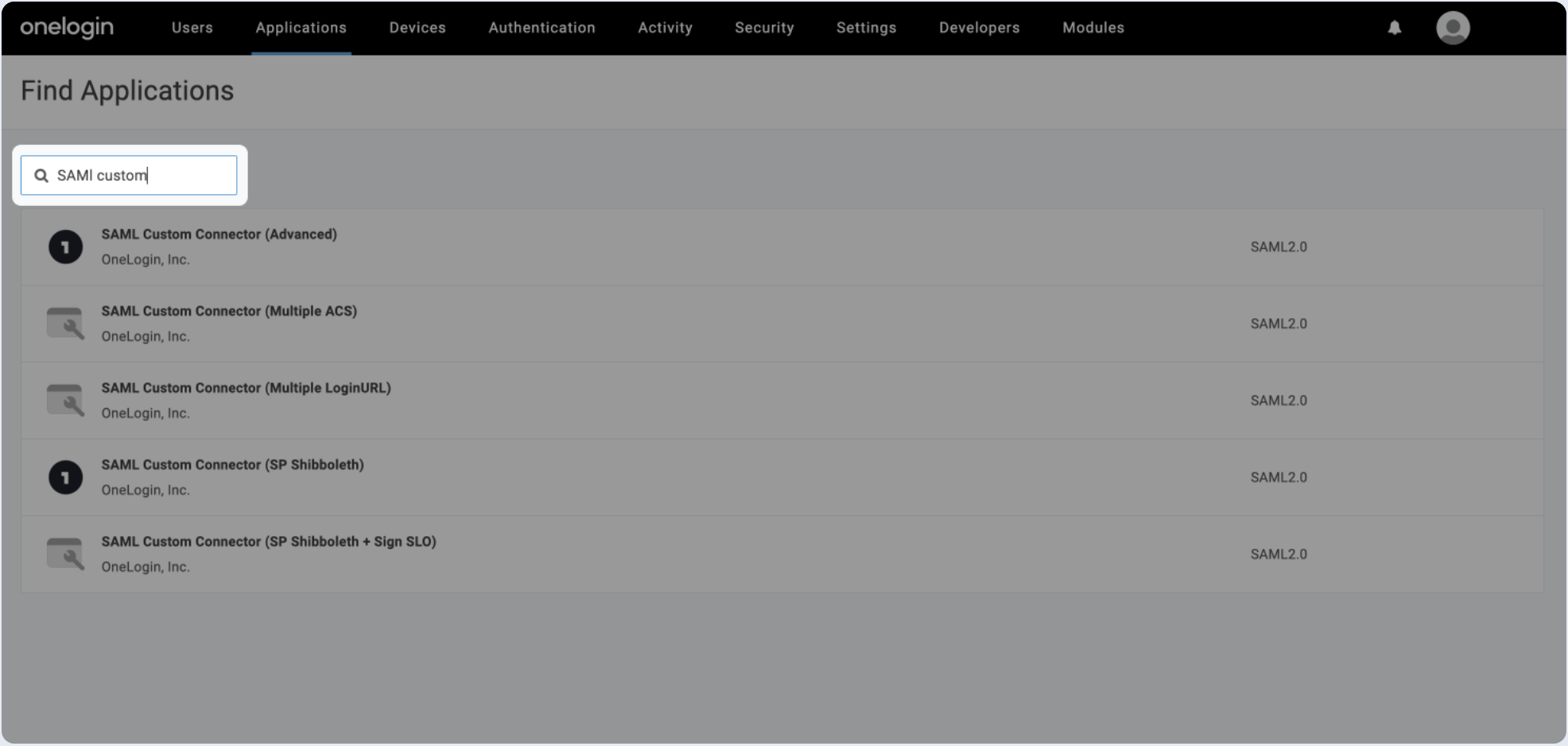- Log in to your OneLogin application dashboard and click Applications on the top navigation and click Add App.