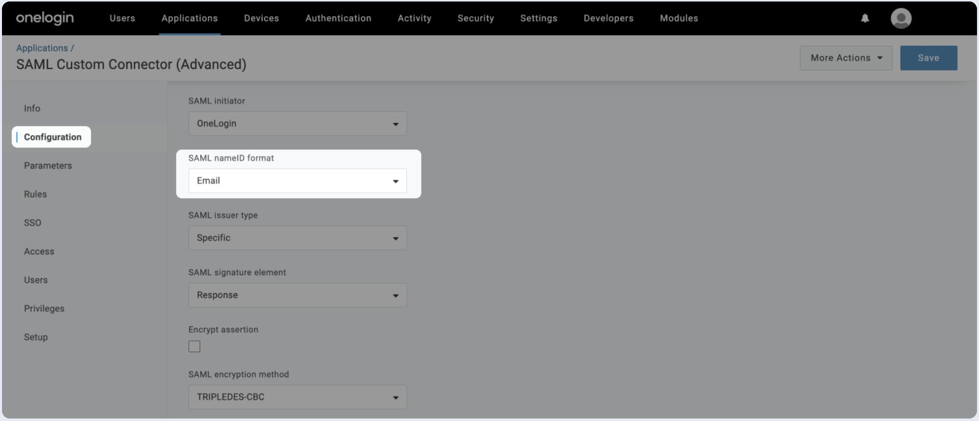 - Scroll down to SAML nameID format and make sure that Email is selected.