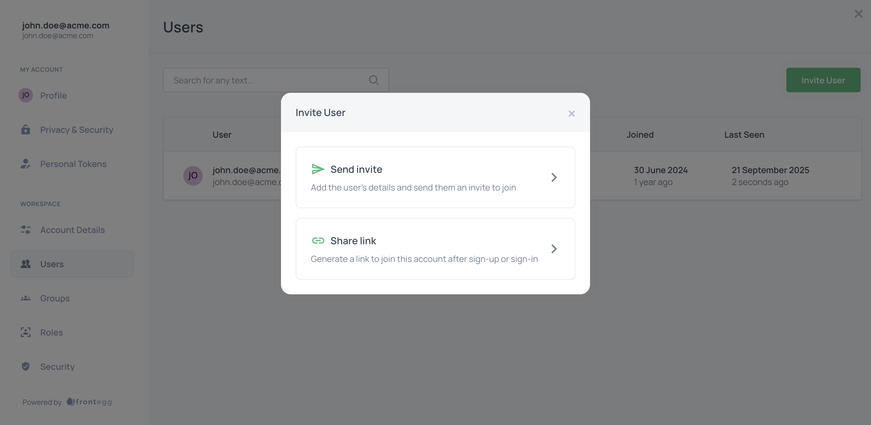- Invite a user via link -