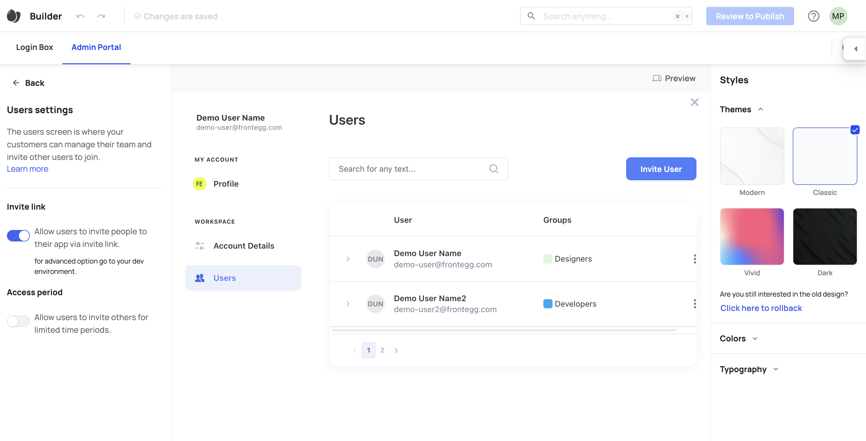 - Invite users by email - enable | disable