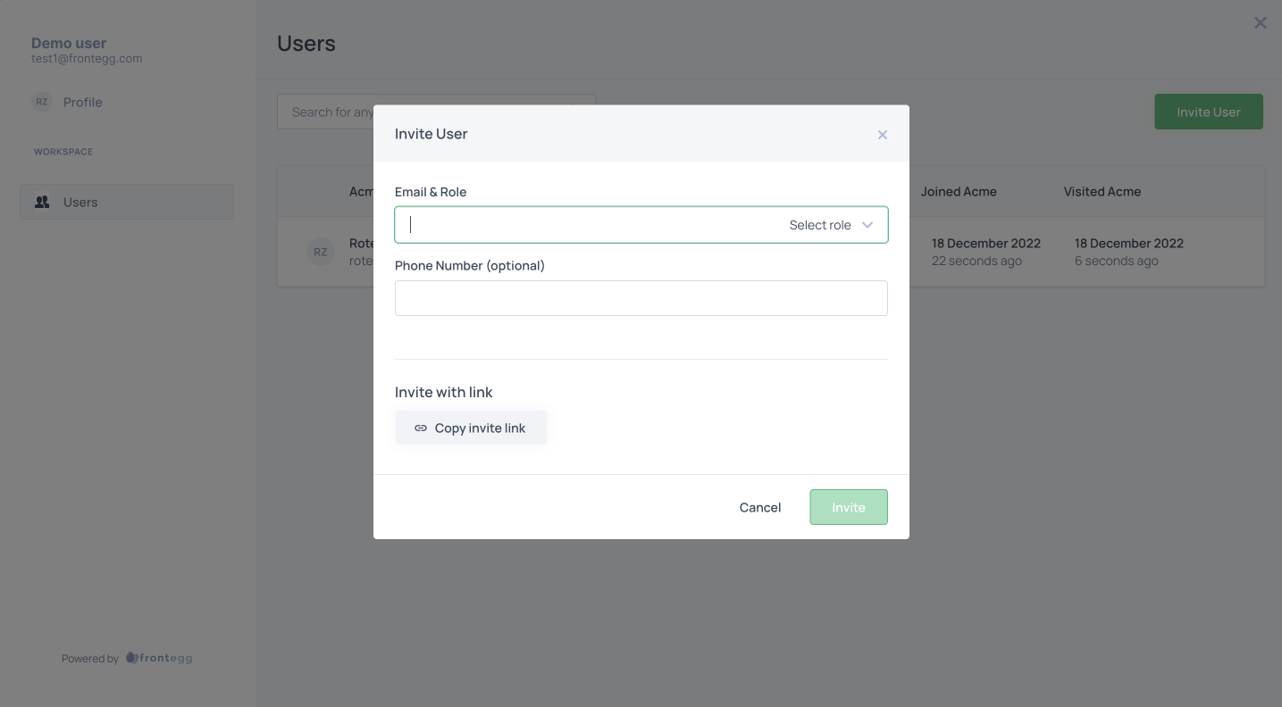 Before customization, this is how the invite user module looks like: