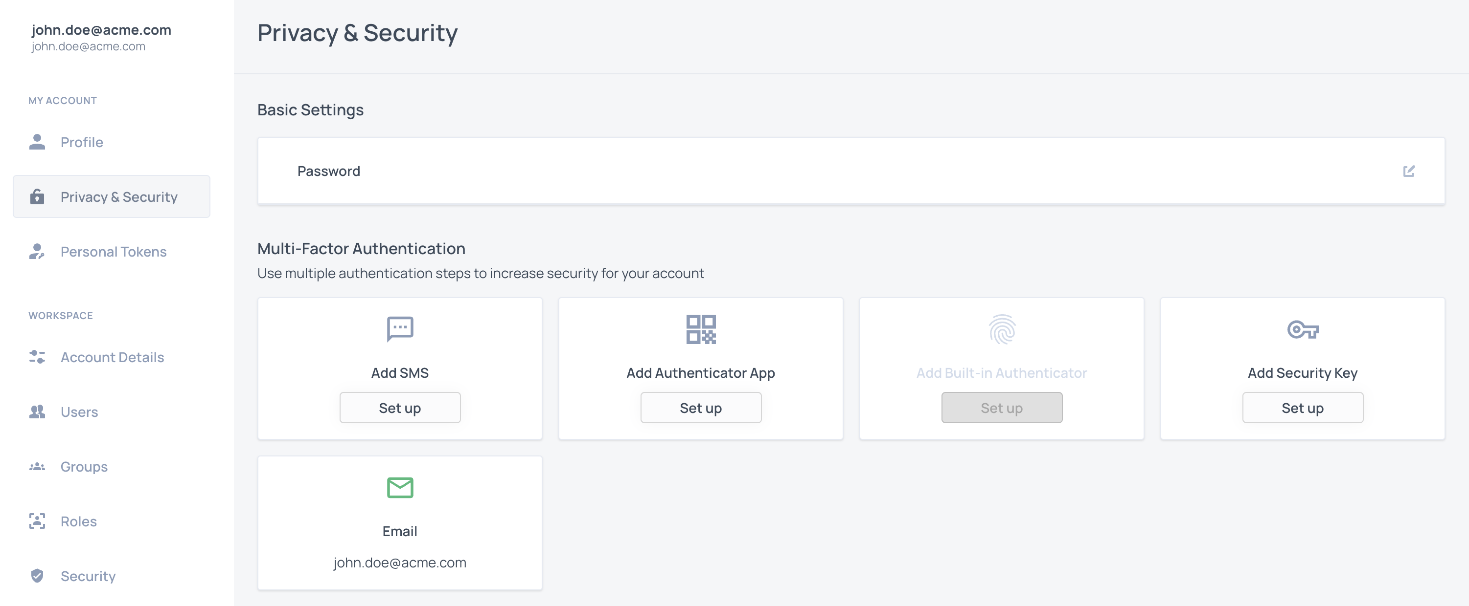 - After initial setup, users can configure additional MFA methods in the self-service portal under the Privacy & Security tab.