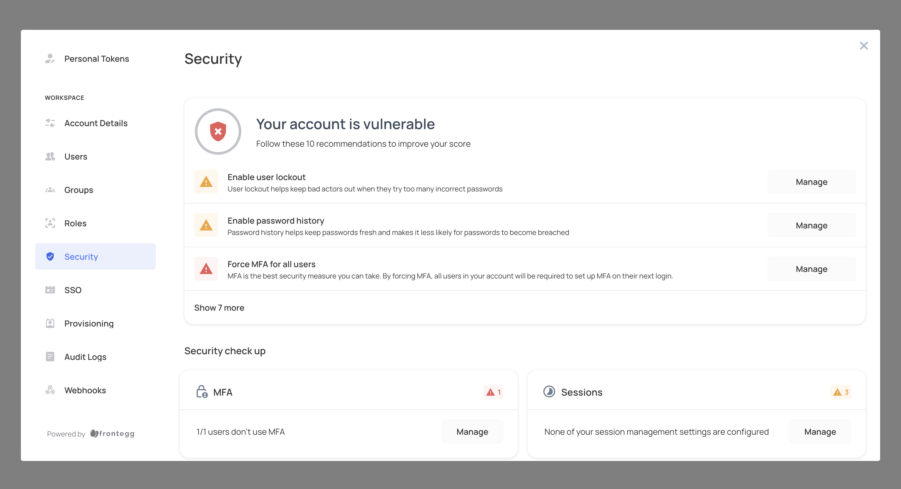 - Go to the self-service Portal and navigate to WORKSPACE ➜ Security.