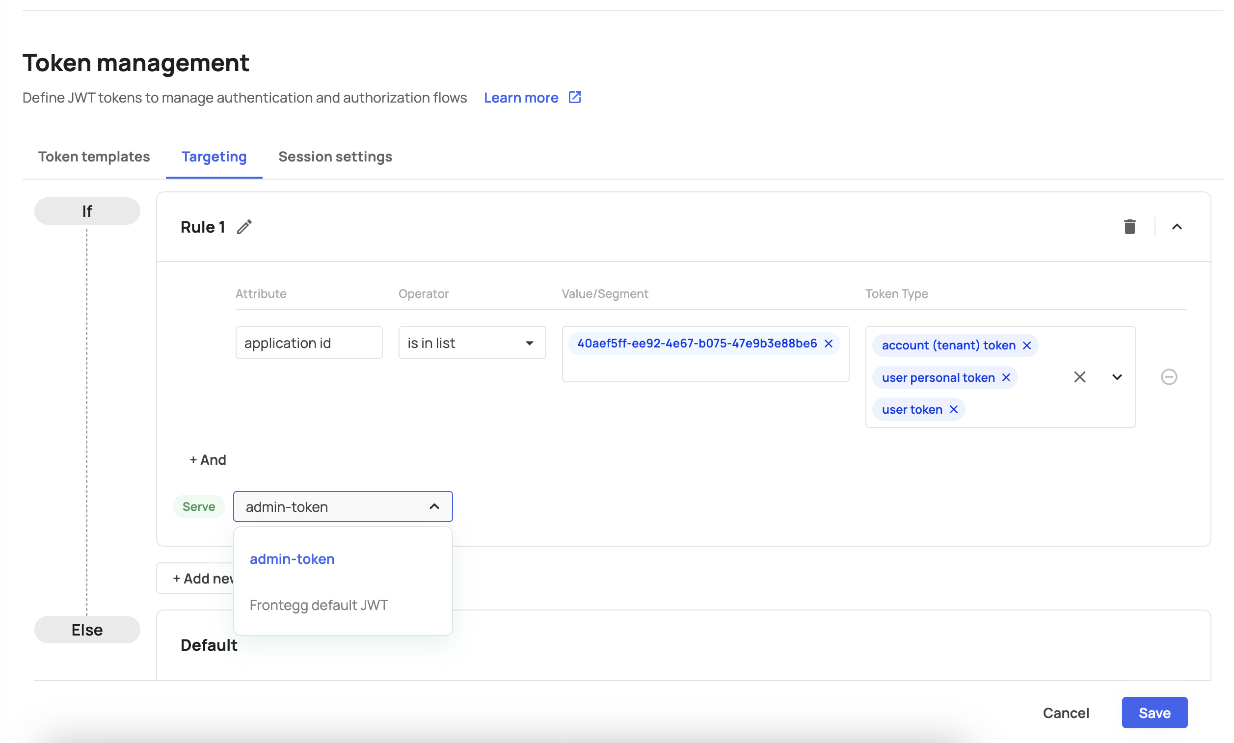 If no targeting rules match, or if the matched template is unavailable, Frontegg will fall back to the default JWT structure to ensure authentication continues to work.